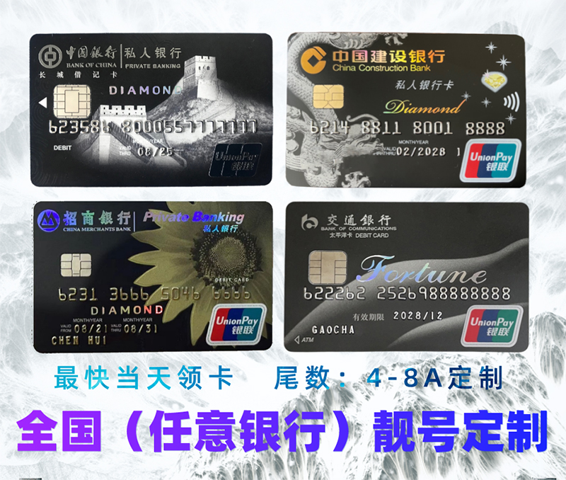 【亿信靓号】全国银行卡靓号定制,尾数4-8A连号,私人银行卡/贵宾卡等等